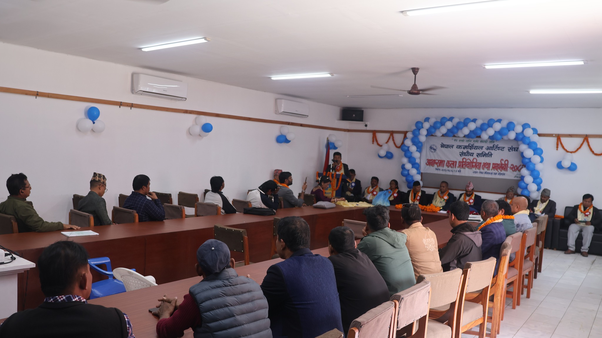 नेपाल ललितकला प्रज्ञा–प्रतिष्ठानको सहकार्य तथा नेपाल कमर्सियल आर्टिस्ट सङ्घको आयोजनामा शुक्रवार (२०८२ चैत ६ गते) ‘अक्षरमा कला प्रतियोगिता तथा प्रदर्शनी २०८२’ सुरु भएको छ । कार्यक्रमको प्रतिष्ठानका कुलपति नारदमणि हार्तम्छालीले उद्घाटन गर्नुभयो । उहाँले अक्षरमा कला प्रदर्शनीले कलामा भावना र भावनामा बौद्धिकतासँगै पहिचान, पहल तथा पहुँच पनि आवश्यक रहेको बताउनुभयो । उहाँले सन्देश, सूचनालाई लिएर सिर्जना गरिने यस्ता कलालाई सौन्दर्यात्मक ढङ्गबाट कसरी प्रस्तुत गर्न सकिन्छ भन्ने कुरामा ध्यान दिनुपर्ने धारणा राख्नुभयो । प्रतिनिधि सभाका नवनिर्वाचित सदस्य हरिप्रसाद भुसालले आफ्नो कर्मक्षेत्र कला भएको र सोहीसम्बन्धी कार्यक्रममा उपस्थित हुन पाँउदा खुसी लागेको बताउनुभयो । उहाँले यस क्षेत्रसम्बन्धी नीतिगत तहमा गर्न सकिने कार्यका लागि प्रतिष्ठानसँग सहकार्यका लागि सधैँ तत्पर रहेको धारणा राख्नुभयो । प्रतिष्ठानका सदस्य सचिव देवेन्द्रकुमार काफ्ले ‘थुम्केली’ले विविध क्षेत्रसँग जोडिएका सर्जकहरूलाई समेटेर आयोजना गरिएको यस कार्यक्रम महत्त्वपूर्ण रहेको बताउनुभयो । उहाँले प्रतिष्ठानले कलाका विविध विधासँग जोडिएका कलाकारहरूलाई समेट्दै ललितकलाको विकास तथा प्रवर्धनमा काम गरिरहेको धारणा राख्नुभयो । कार्यक्रममा नेपाल ललितकला प्रज्ञा–प्रतिष्ठानका पदाधिकारी, नेपाल कमर्सियल आर्टिस्ट सङ्घका कार्यवाहक अध्यक्ष सुवासकुमार शाक्य, उपाध्यक्ष राजेन्द्रप्रसाद सुवेदी, डम्बर तामाङ, शारदा मानन्धर, महासचिव सुवास केसी, सचिव राजेन्द्र गुरूङ, सन्तोष बिसी, केशव लामा, कोषाध्यक्ष नवीन कार्की, सह–कोषाध्यक्ष सन्तोषकुमार गुप्ता, सङ्घीय सदस्यहरू रामकृष्ण चौधरी, अन्दीलाल सरदार, नेपाल कमर्सियल आर्टिस्ट सङ्घ पूर्वउपाध्यक्ष रेखा प्रधान राई, थारु कलाकार सङ्घका अध्यक्ष श्रवण चौधरी, कलाकार, पत्रकारलगायतको उपस्थिति रहेको थियो । ४४ कलाकृति राखिएको प्रदर्शनी चैत ७ गते सम्पन्न हुने छ ।