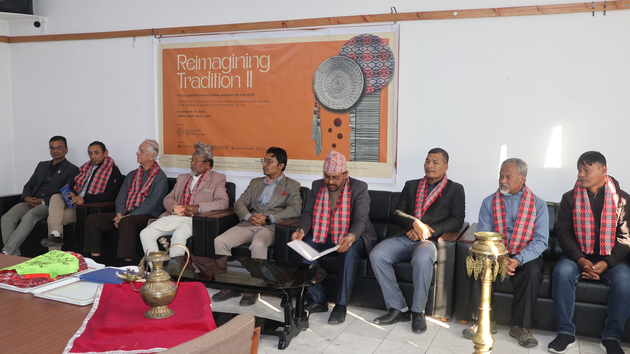 काठमाडौँ विश्वविद्यालय स्कुल अफ आट्र्स र स्कुल अफ इन्जिनियरिङको आयोजना र नेपाल ललितकला प्रज्ञा–प्रतिष्ठानको सहकार्यमा सोमवार (२०८२ मङ्सिर २२ गते)बाट नेपाल ललितकला प्रज्ञा–प्रतिष्ठान नक्सालमा कला तथा डिजाइन विभागअन्तर्गत शिल्पकला तथा डिजाइन सङ्कायका विद्यार्थीहरूद्वारा कार्यशालाामा सिर्जित कलाकृति ‘रिइम्याजिन ट्रेडिसन–२’ प्रदर्शनी सुरु भएको छ । प्रदर्शनीको उद्घाटन प्रतिष्ठानका कुलपति नारदमणि हार्तम्छालीले गर्नुभयो । कार्यक्रममा प्रतिष्ठानका कुलपति हार्तम्छालीले आजको विद्यार्थी पुस्ता नै भोलिको देशको हरेक क्षेत्रमा नेतृत्व गर्ने पुस्ता भएको बताउँदै सिर्जनशीलतामा लाग्न आह्वान गर्नुभयो । विषयवस्तु, शिल्पअवधारणा र सिर्जनाको बौद्धिक अभ्यास साधनाका अर्थले महत्त्वपूर्ण रहेको बताउँदै उहाँले भावुकता, बौद्धिकता, प्राज्ञिकताको सामञ्जस्यबाट ज्ञानको निर्माण हुने बताउनुभयो । यस्ता प्रदर्शनीबाट विद्यार्थीहरूको कला कर्मको समीक्षा, मूल्याङ्कन तथा सिर्जनात्मक वातावरण तयार हुने बताउँदै उहाँले शिल्प–हस्तकला, वास्तुकला जीवनसँग जोडिएको र यसले सर्जकलाई आत्मनिर्भर बनाउनुका साथै समाजको अर्थतन्त्रमा समेत योगदान दिने बताउनुभयो ।