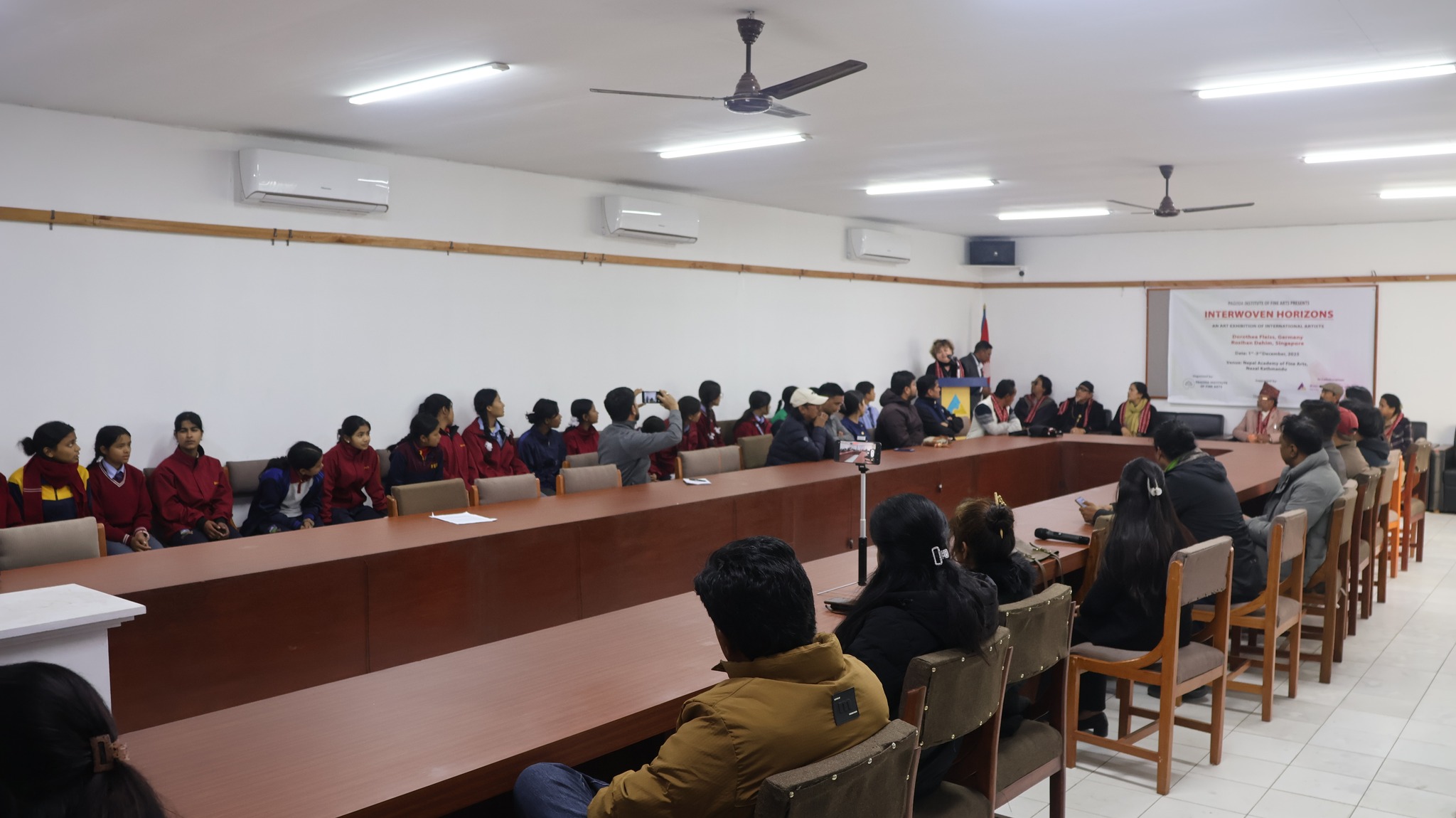 नेपाल ललितकला प्रज्ञा–प्रतिष्ठानको सहकार्य तथा Pagoda Institute of Fine Arts को आयोजनामा सोमवार(२०८२ मङ्सिर १५ गते) बाट Interwoven Horizon प्रदर्शनी सुरु भएको छ । प्रदर्शनीको प्रतिष्ठानका कुलपति नारदमणि हार्तम्छालीले उद्घाटन गर्नुभयो । प्रदर्शनीमा Germany का Dorothea Fleiss र Singapore का Roshihan Dahim को कलाकृति राखिएको छ । प्रदर्शनी मङ्सिर १७ गते सकिने छ ।